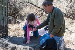 Fourth was a wonderful hike with cousins Walt and Jan in the Tonto National Forest (cactus not trees). We took the Metate Trail. For those of you not familiar with the Indian Southwest – a metate is the ‘scooped out rock utensil and grinding rock’ that was used to ‘mash’ corn (or other food item) to a powder or flour. Along this particular trail we found the ruins of a ‘kitchen‘ with the metate.