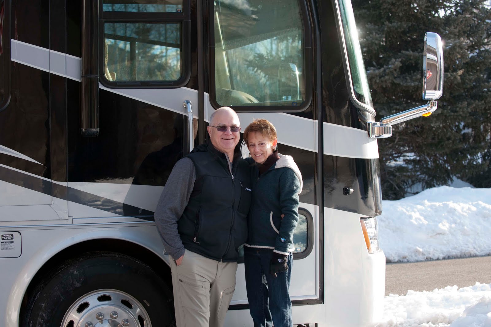Saturday morning we were off bright and early – well sort of. It seemed that everything having to do with the tow car was frozen (the breaking mechanism that goes inside, the hook-ups, etc) so we had to heat them up in order to hook them up. Finally, at 8:07 we were on our way with all our neighbors cheering us on and taking pictures for us (I think they just wanted us to get that BIG thing going!).