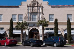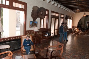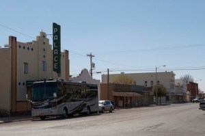 We continued on this state route in the middle of no where – and reached the town of Marfa, TX where we decided we might be prudent to fill up the fuel tank. While Gary was taking care of the fuel – Elizabeth was looking at all the ‘street’ signs – one of which was the sign to the right to the Paisano Hotel, which was used as the base camp by the director, George Stevens, of “Giant” during its filming. Maybe this was something to go check out – which we did – and found a beautiful, old hotel with wonderful tile detail that truly made this a building to see and admire.