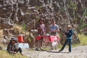 On the way back we checked out a little of the town and booked a river raft trip for the next day. We also stopped at a little General Store to check it out and to see if they might have a coffee pot for Gary to replace the one that ‘died’ a couple of days ago (Gary gets really grouchy without his 12 cups of coffee in the morning – and NO he can’t use the espresso machine for this!). What a GREAT little place. Anything and everything you could want – and it doesn’t break the bank to buy things there. We found just the coffee pot Gary was looking for, ice cream sandwiches and nutty bars for our afternoon snack AND MOST IMPORTANT – home made tortillas:-) We took those back to Magic and had them with some of that red chili con carne from Mesilla – VERY HAPPY CAMPERS despite the quarry.