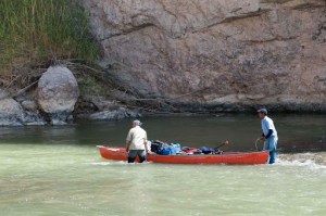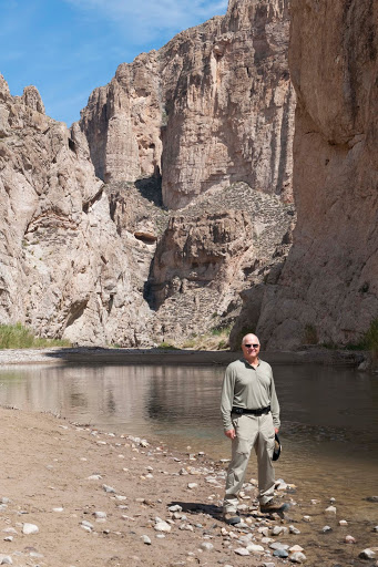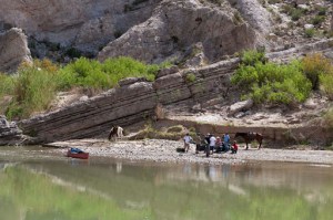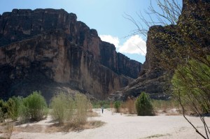 When we started down the trail into Boquillas Canyon, we saw another little ‘camp’ that appeared to be more Mexican Nationals as there were many little ‘merchandise displays’ along this trail. When we got to the bottom of the trail and down along the river we saw a Border Patrol with what appeared to be one of the Mexican Nationals who had come across on his horse. They talked for a few minutes as we were walking in their direction. As we got close, the Border Patrol led the Mexican Nat. away and kept saying to him “tell them its OK”. Again, assuming the Border Patrol was having the Mexican radio (with a VERY sophisticated radio) to the rest of the ‘camp’ on the other side of the river that he was OK – not knowing for sure what that might mean?!?! I must admit, Gary and I were both sad if he was being arrested. Clearly, these men do NOT come over here and stay. Anyway, we continued on our hike and on the return we learned that ALL our assumptions were wrong – and once again – DON’T ASSUME!! On the way back we saw a couple of Mexican Nat’s going down the middle of the river. Of course, Gary noted that their canoe was full of photo equipment and the man walking was coming our way with additional equipment. I had to talk to him, as I was concerned that if he was on our side he might get arrested as the man before him. Turns out the camp on the other side of the river was about 50 people there to do a film for Mexican tourism – and the man I was talking to was leading the group. They were going into the canyon to get the beauty of the canyon. As he said “there is so much beauty in Mexico, but right now all anyone hears about are all the drug murders”. We also asked about the man we had seen earlier and learned that he came over to talk to the Border Patrol to attempt to get more boats for their equipment! And, we saw him coming back down the path as we reached the end. So – all was good – and this made this little hike VERY interesting.
