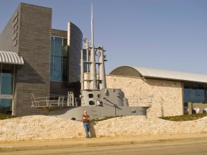 Perhaps the real import of the town is that it is the birthplace (we were in the house) of Fleet Adm. Chester W. Nimitz, Commander-in-Chief of the Pacific Fleet during World War II. As such, it is also the home of the National Museum of the Pacific War operated by the Admiral Nimitz Foundation, the only institution in the continental US dedicated exclusively to telling the story of the Pacific Theater battles of WW II. This museum walks one chronologically through the various battles in the Pacific beginning with the lead-up to Pearl Harbor (including the reasons for the animosity of Japan to China and therefore the US who was supporting China) to dropping the bombs on Japan. This is done with various forms including combinations of audio and visual displays. The museum also includes displays of both Allied and Japanese aircraft, tanks, guns and other large artifacts made famous during the Pacific War campaigns. This is a fabulous exhibit and we were only sorry we did not allow more time to go thru it. When we come back, at least a full day will be devoted to this Museum.