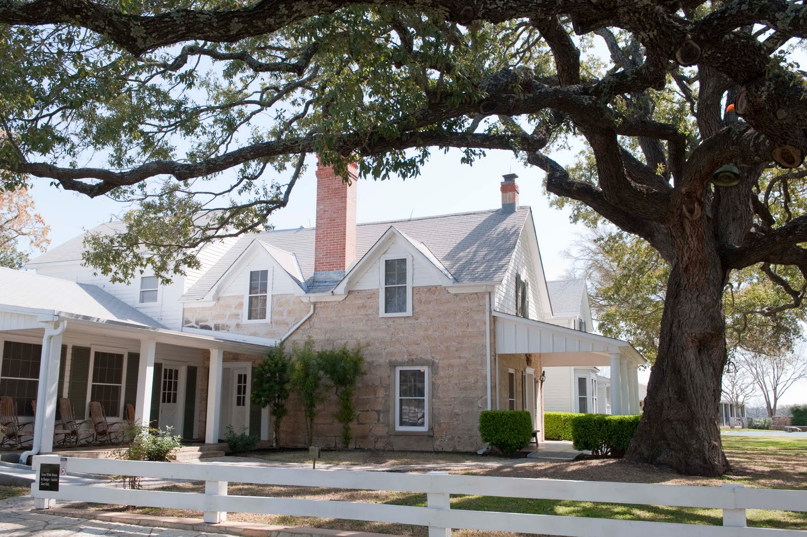 The other important site just outside of Fredericksburg in Stonewall, TX is the Lyndon B. Johnson National Historical Park, which includes LBJ’s birthplace (complete with out house – see Gary below), the one-room schoolhouse where the President began his schooling at the age of 4, the family cemetery and final resting place of the President and First Lady and the Texas White House. The Texas White House was the sight of many important meetings with the President, Secretary of State and Joint Chiefs during the Viet Nam war – many on the front lawn under the old oak trees. Even so – the house was modest and homey with personal touches. One of those touches are pillows given as gifts – including a pillow particularly liked by LBJ on a chair in his office which says “It is my ranch and I do as I damn please”. His daughter, Luci, joked, “If the house had caught fire one possession Daddy would have tried to save was this pillow”.