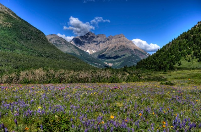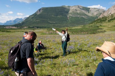 And, today (Thursday, July 15) was just another day in this paradise. There are free guided walks/hikes almost every day and free ranger talks almost every night. We decided to join one of these hikes today and learn about those who inhabited the area 10,000 years ago and the history of the bison in the area – as well as the ‘uses’ of the bison by the inhabitants. It was interesting that the bison is a ‘curious’ animal and does NOT do well in snow or bogs (depending on the season) due to its relatively small feet for its body. This allowed the ‘plains people’ to create an activity of interest to the bison (such as dressing as wolves) – get it to follow and investigate – then lead it over an edge into a bog or snow bank, both of which would make it difficult for it to move or get away – and kill it! During our 5 mile hike we saw some of the most beautiful wild flowers – something we are not used to on our trips as we travel in the early spring and late fall when flowers are NOT out yet or are long gone.