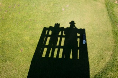 We were up on a viewing stand to see if the next green was clear.