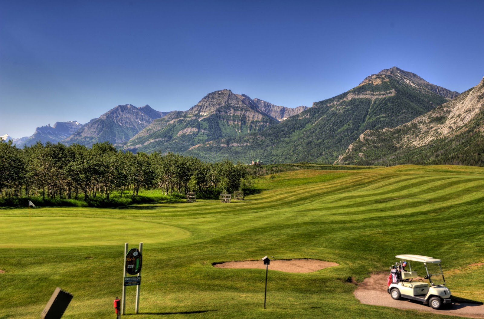 Friday was a golf day at the Waterton GC. We left the British Open during the 1 hour delay due to the wind and moved to the wind on the Waterton course. We felt a great deal of empathy for all the players at the Open – as we could not judge what the 30-50 mph wind gusts might due to our ball – and we did NOT have a million dollars on the line!!!! It was NOT a fun round – BUT, the scenery was wonderful. AND – we saw a bear on the way to the course;-)