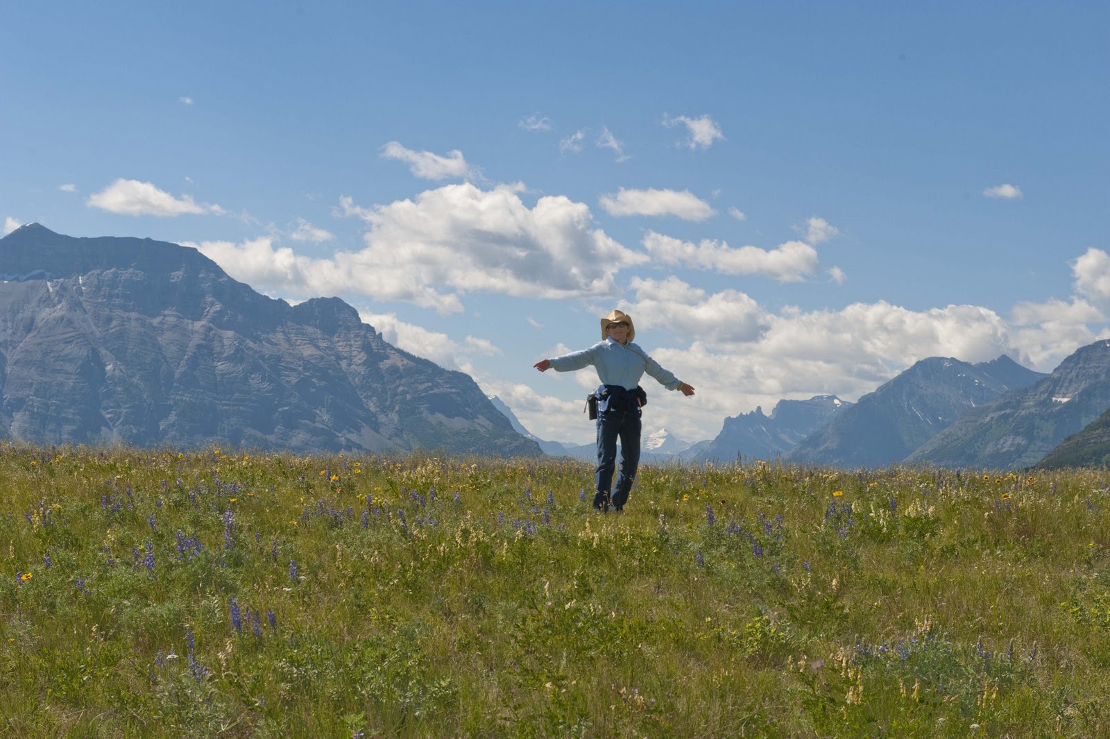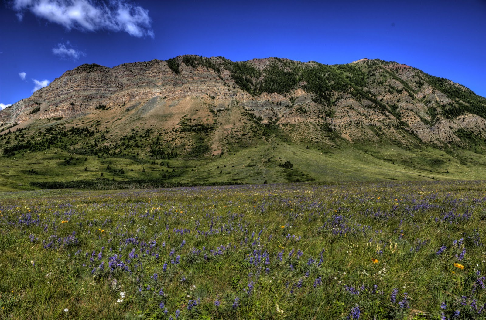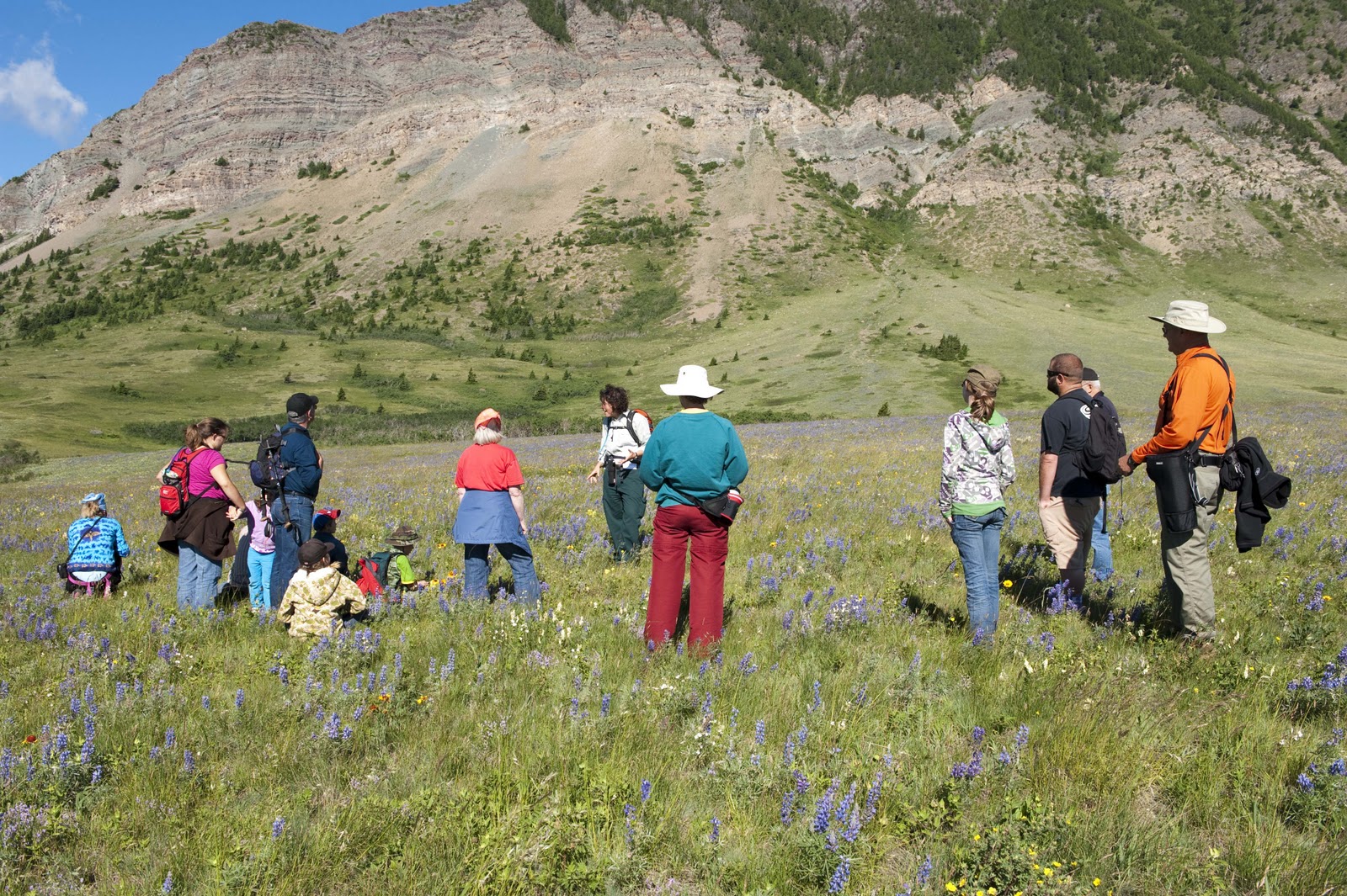 And, today (Thursday, July 15) was just another day in this paradise. There are free guided walks/hikes almost every day and free ranger talks almost every night. We decided to join one of these hikes today and learn about those who inhabited the area 10,000 years ago and the history of the bison in the area – as well as the ‘uses’ of the bison by the inhabitants. It was interesting that the bison is a ‘curious’ animal and does NOT do well in snow or bogs (depending on the season) due to its relatively small feet for its body. This allowed the ‘plains people’ to create an activity of interest to the bison (such as dressing as wolves) – get it to follow and investigate – then lead it over an edge into a bog or snow bank, both of which would make it difficult for it to move or get away – and kill it! During our 5 mile hike we saw some of the most beautiful wild flowers – something we are not used to on our trips as we travel in the early spring and late fall when flowers are NOT out yet or are long gone.