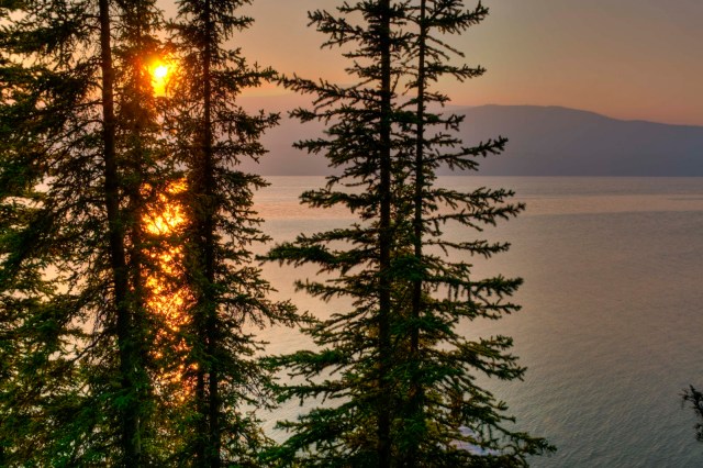 | We had this awesome view from our campsite at the Red Goat in Iskut. The forest fire smoke created some interesting colors that evening. |