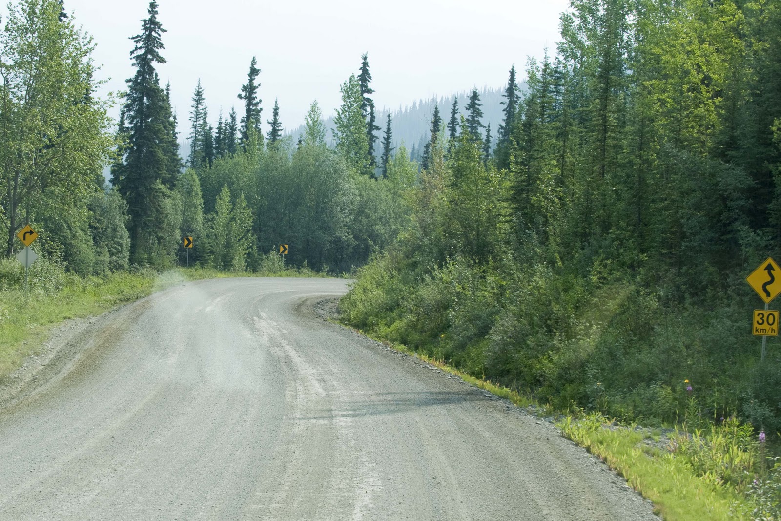 | The Iskut views be damned. I couldn’t wait to leave the campground so we continued north on the Cassiar Hwy and ran into some of the rougher roads we were warned to expect. |