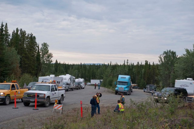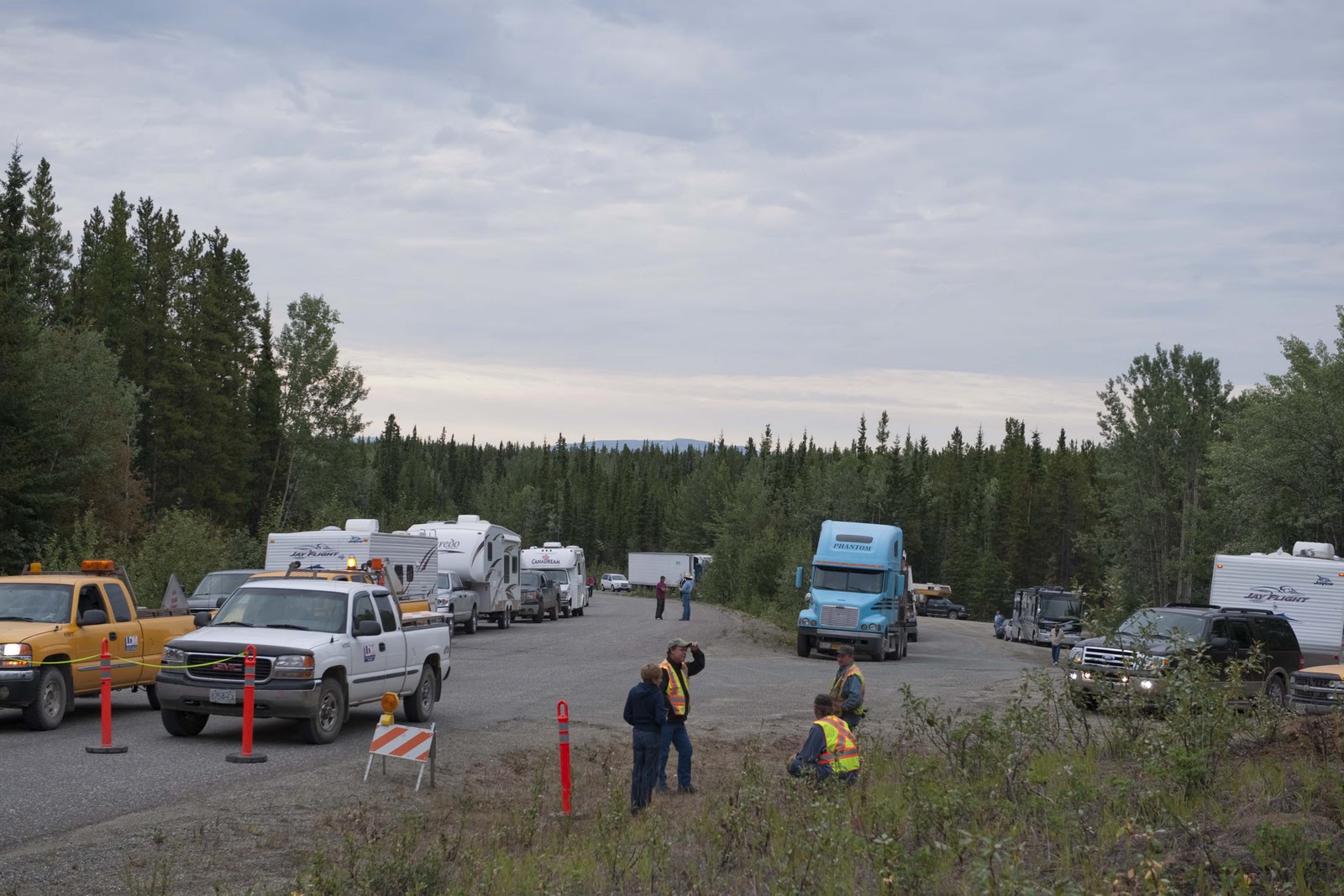 | Road closed for the night. There should be an escorted caravan at 8 am of all goes well. |