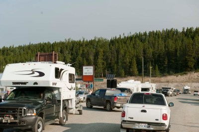 | This line of vehicles was waiting their turn at the north end. Gives an idea of the organized chaos. |