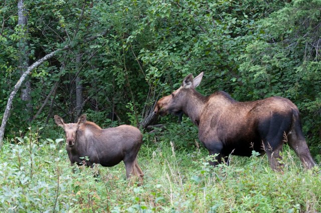 | Another moose sighting. This mom and calf hung around for several minutes. |
