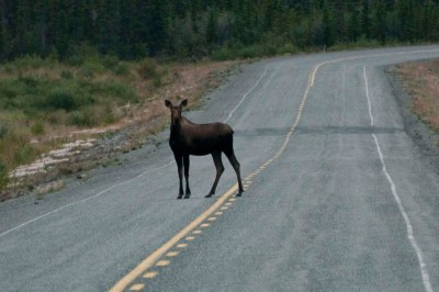First the Bad part of FINALLY – the road between the Cottonwood RV Park on Kluane Lake and Tok, Alaska was FINALLY the road we had read about – and more – or less depending on how you look at it!! The trip was only 220 miles – BUT, it took 8 hours to drive it;-( There aren’t any words to describe it to you – and the pictures will not do justice to the bumps, rolls, fissures, breaks in asphalt, gravel, dirt, tar, construction, pilot cars, etc., etc., etc.!! The only good part of this drive was that Gary FINALLY got his shot of a moose – a real one and not another sign on the road;-)