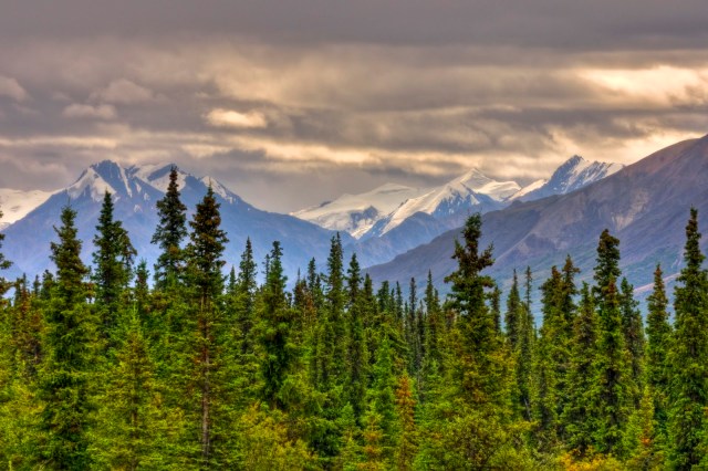 A distant view of the snow capped Wrangell Mountains. Our next segment will be to go around to the other side of that range and explore some old mines. |