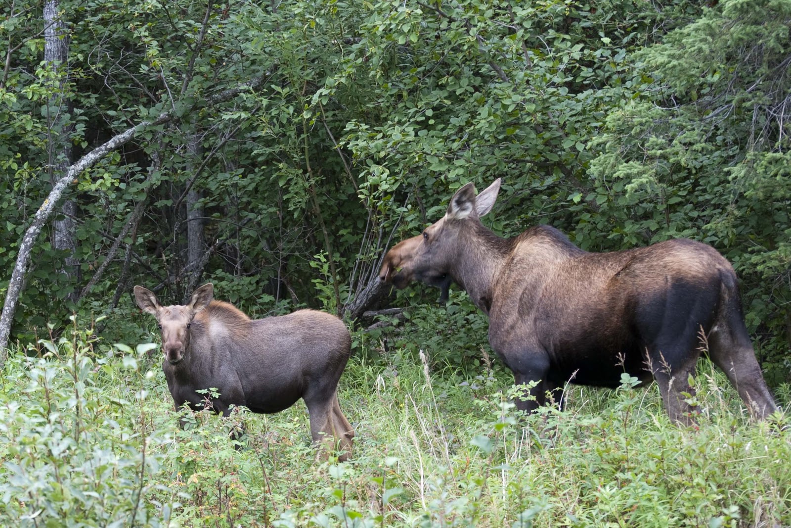 | Another moose sighting. This mom and calf hung around for several minutes. |