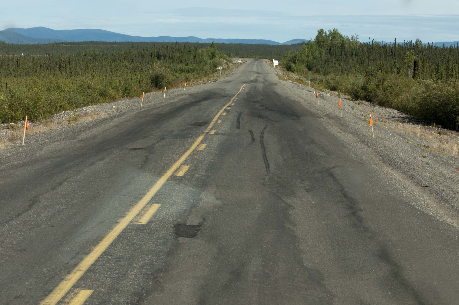 First the Bad part of FINALLY – the road between the Cottonwood RV Park on Kluane Lake and Tok, Alaska was FINALLY the road we had read about – and more – or less depending on how you look at it!! The trip was only 220 miles – BUT, it took 8 hours to drive it;-( There aren’t any words to describe it to you – and the pictures will not do justice to the bumps, rolls, fissures, breaks in asphalt, gravel, dirt, tar, construction, pilot cars, etc., etc., etc.!! The only good part of this drive was that Gary FINALLY got his shot of a moose – a real one and not another sign on the road;-)