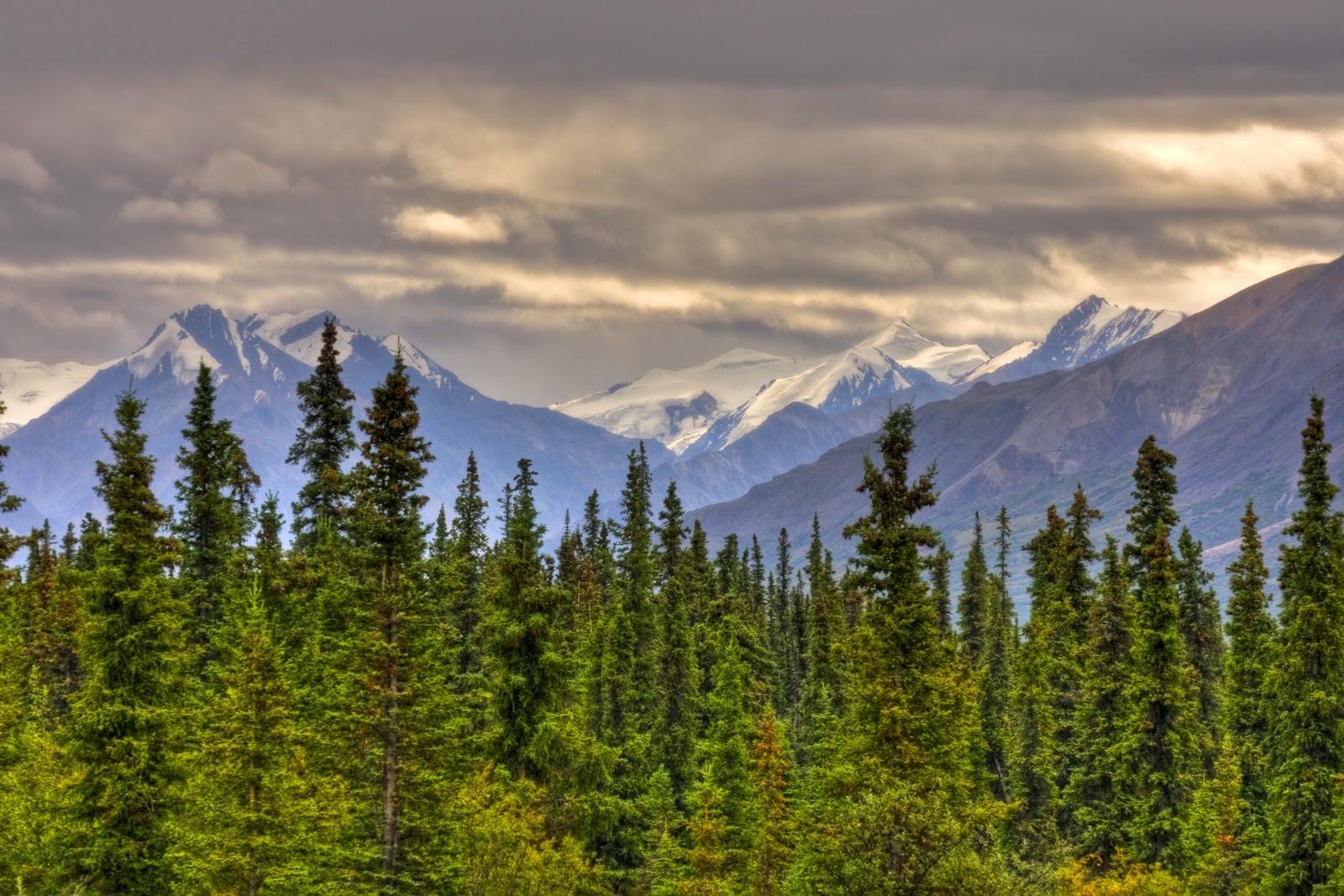 A distant view of the snow capped Wrangell Mountains. Our next segment will be to go around to the other side of that range and explore some old mines. |