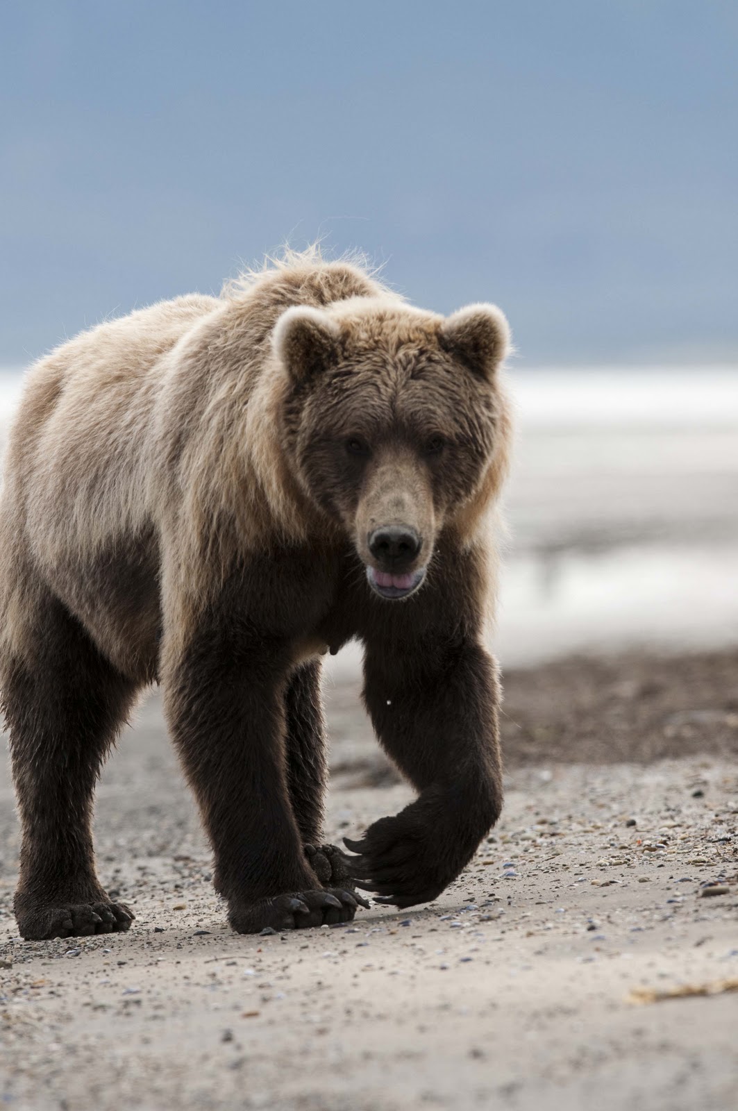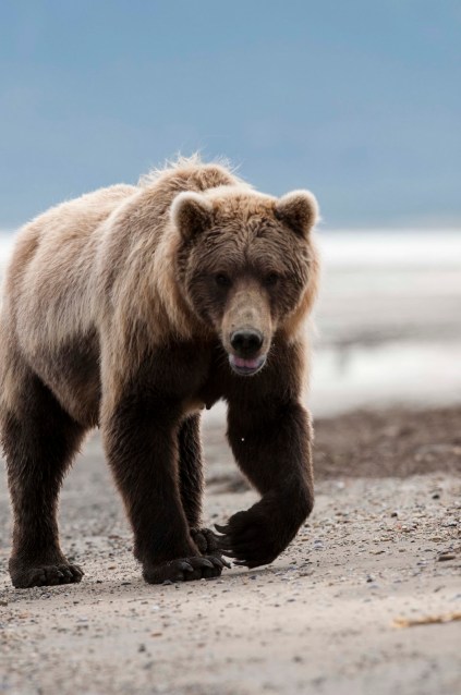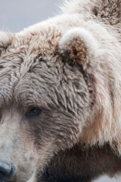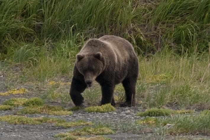 After about four hours, it was time to return;-( BUT, Bad Mama gave us one final show! She was on her way back from her afternoon outing and just passing the planes as we returned to board. Our guides said to ‘bunch up and sit down’! YES – sit down. (You have to have great faith in these guides – they said this was submissive behavior and the bear would walk right past!) AND SHE DID! Good thing – because IF Gary had stretched his arm straight out to his side he would have been able to touch her!! UP CLOSE AND PERSONAL!! He does have a shot of her as she went by – but she was sooooo close with the lens he had on the camera, he only got a portion of her head!