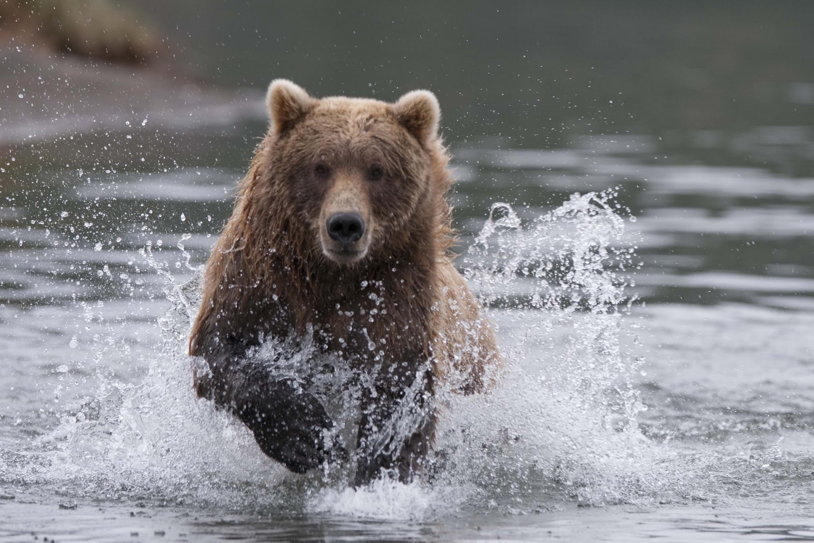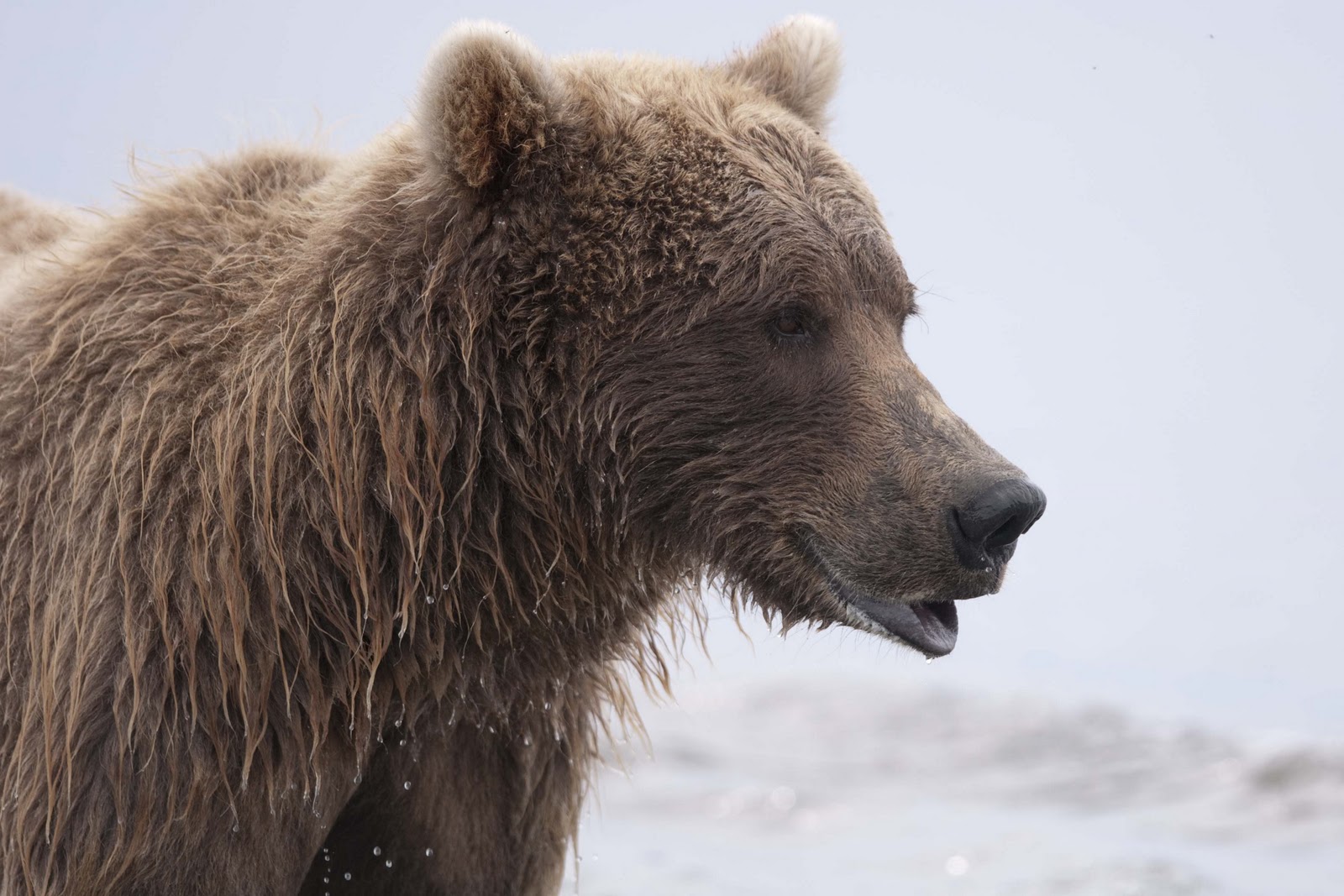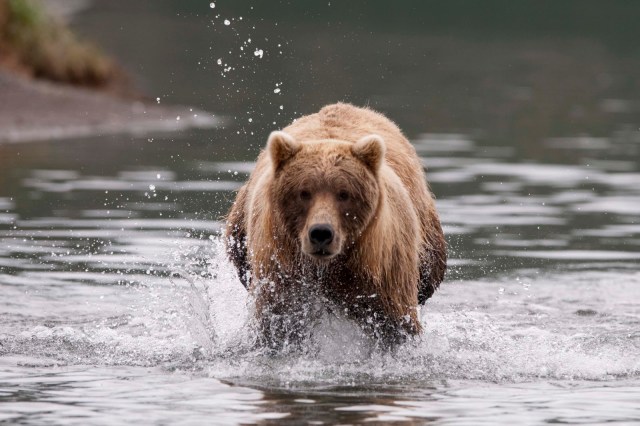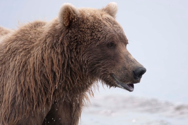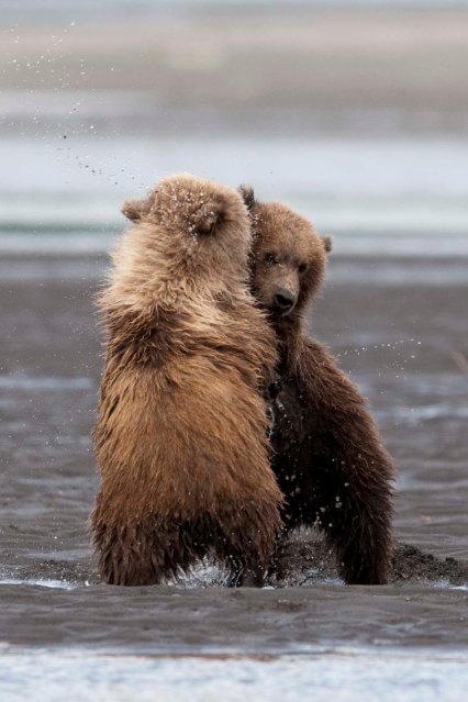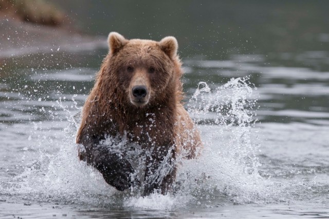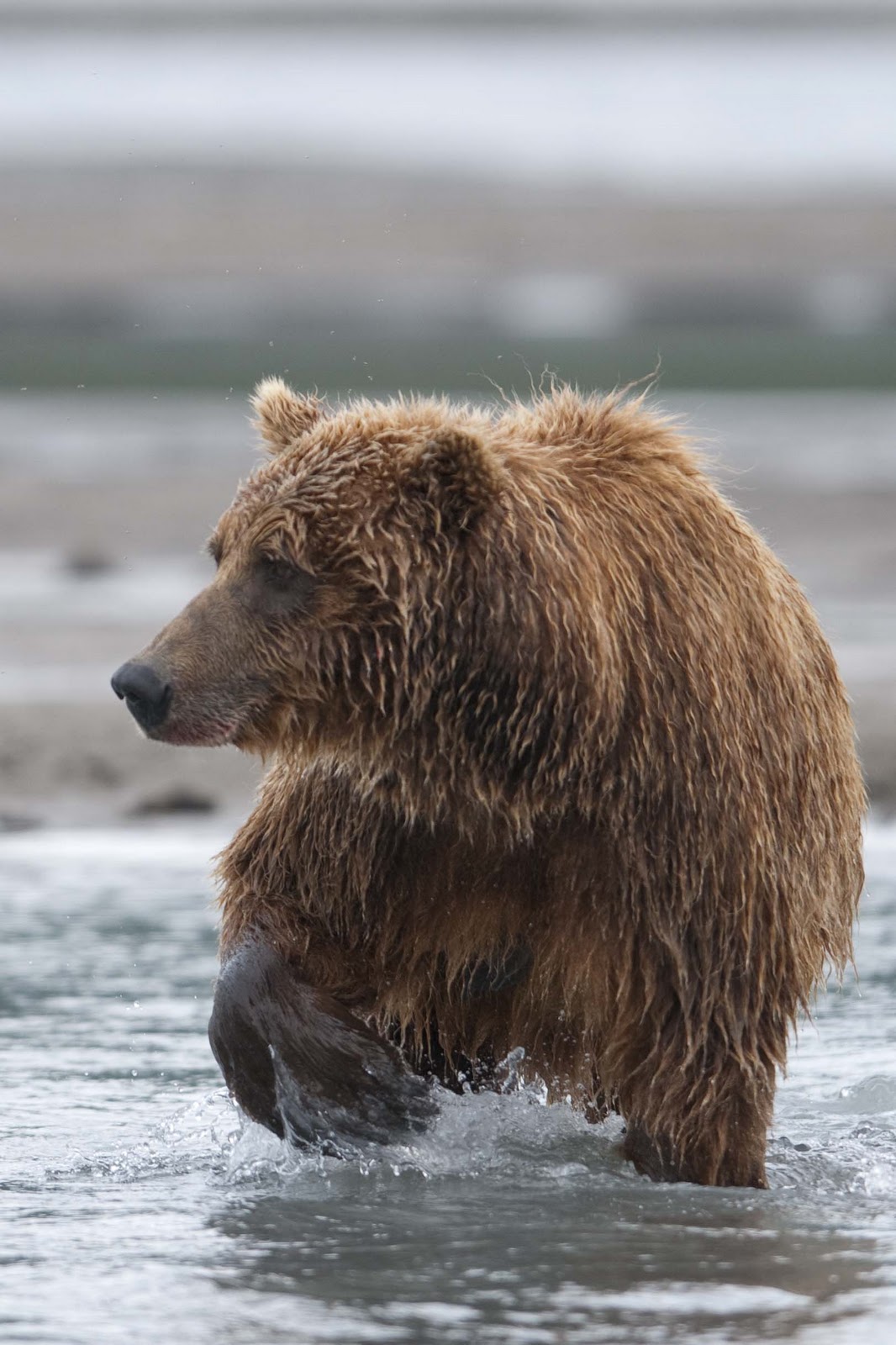 This Mama was a little lazy – she just dug up old fish that had become trapped in the sand – good and smelly so easy to find!! YUCK!! The best part of this family was watching ‘the kids’ float down the river to get to Mama and then wrestling with each other. That, and the fact that one of the cubs had a beautiful collar of lighter brown around its neck.