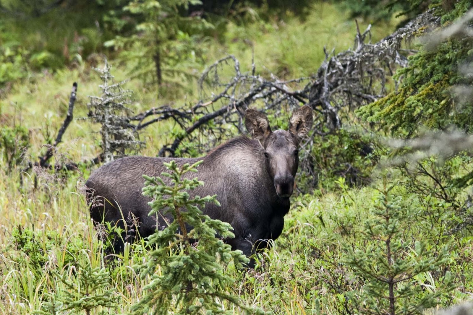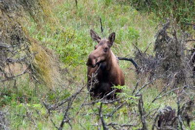 Well – guess what our days in Homer brought?? A bear expedition. It came, however, after a two day weather postponement. No matter (we are retired after all and can adjust our schedule at a moments notice;-)) – those days were just filled with an ‘investigate Homer’ day and an ‘investigate Soldotna’ day. The day to Soldotna netted a nice visit with Marita and Pat, who we met in the Phoenix RV Park, and another moose sighting of a cow and her calf –