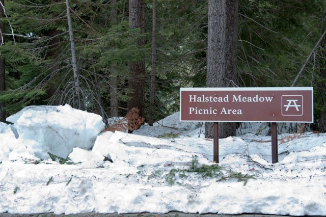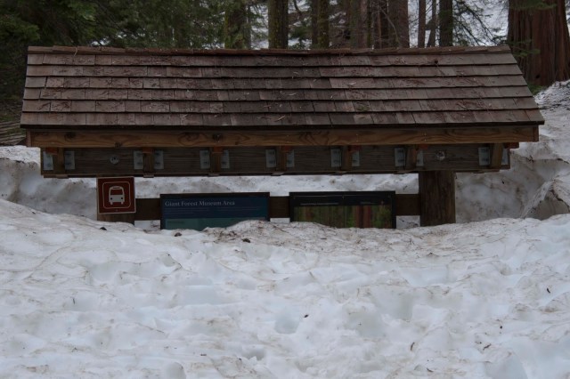 Our original plan was to take the 2 mile hike around the General Sherman Tree, stop at a beautiful spot and eat our picnic lunch. But – all we could find was snow;-(
