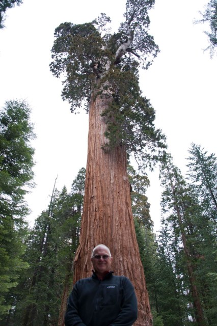 We did get in a short ‘hike’ along the road and up to see the General Sherman Tree – 2,100 years old, 274.9 feet tall and 102.6 feet in circumference. In mass, this is the largest living tree. It grows enough new wood every year to make a 60-foot-tall tree of usual proportions AND a 13-story building could fit beneath its lowest branch!! Can you even see Gary –