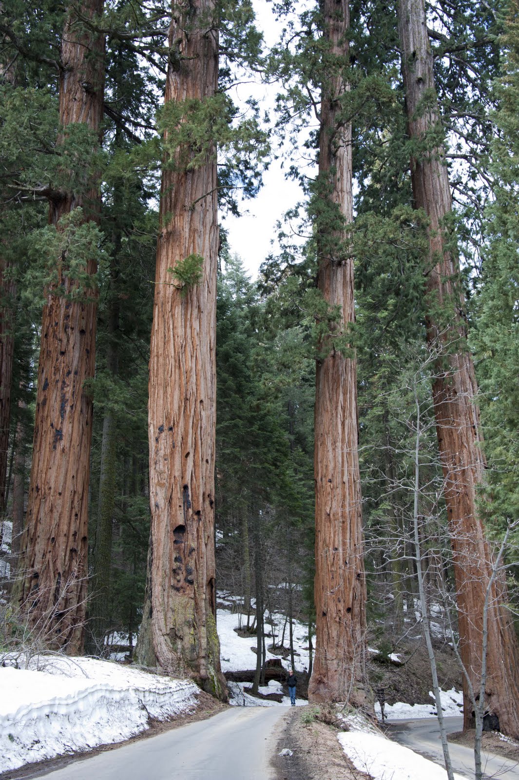 Our original plan was to take the 2 mile hike around the General Sherman Tree, stop at a beautiful spot and eat our picnic lunch. But – all we could find was snow;-(