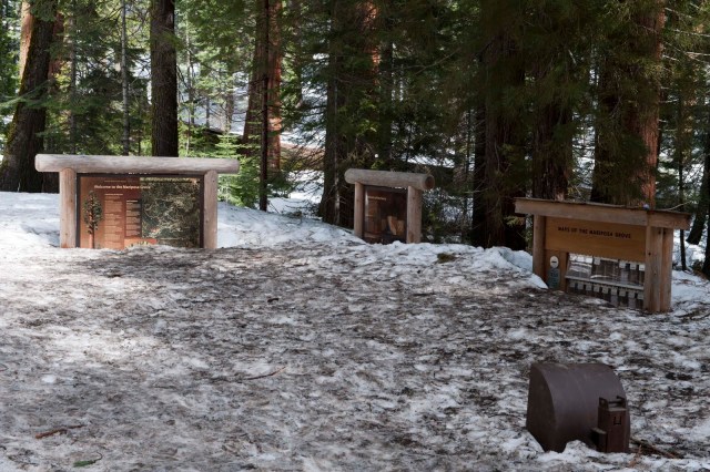 The elevations in the park range from 2,000 feet to 13,000 feet. So while the Valley was quite nice, Wawona and the Mariposa Grove of Giant Sequoias was back in the snow! This eliminated our anticipated hike;-(
