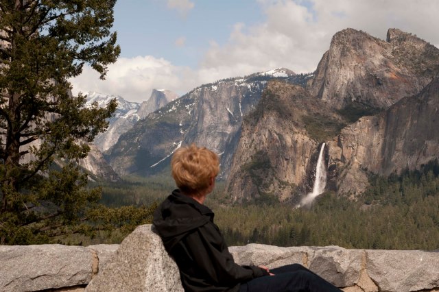 Just outside of the Valley is one of the most photographed vistas in the world. Here one gets a classic view of Yosemite Valley, including El Capitan (on the left), Clouds Rest (in the middle where the clouds are ‘resting’), Half dome (coming around clockwise), Sentinel Rock, Cathedral Rocks and Bridalveil Fall. We spent quit a bit of time here just taking in the sights! (Gary does get a little bit of slack for the phone thing — as he got an offer on his Mother’s house and was trying to move the deal along while there. This is a good thing.)