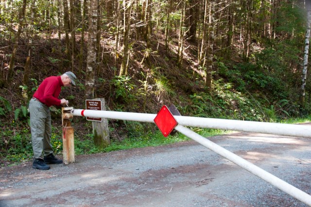 Tuesday, May 10, was a wonderful day! The ‘Ancients’ were calling again – so after obtaining a pass (free) for the Tall Trees Grove from the Ranger Station, we were on our way. Seven and a half miles past the Lady Bird Johnson Grove is a turn-off for the Tall Trees. Then you go thru the locked gate (got lock combination along with day pass) and travel six and a half miles down the dirt road to the trail head.