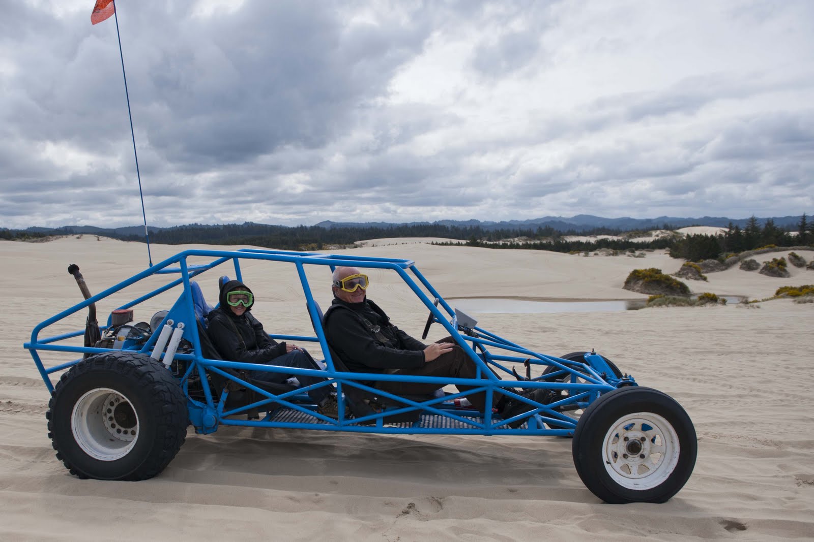 Well, after this little adventure, I just had to do the dune buggy thing. Sand Dune Frontiers provided the ‘buggy’ and a knowledgable driver that gave us a good turn on the rippled dunes – out to the ocean – AND safely found his way home!! What a BLAST!!