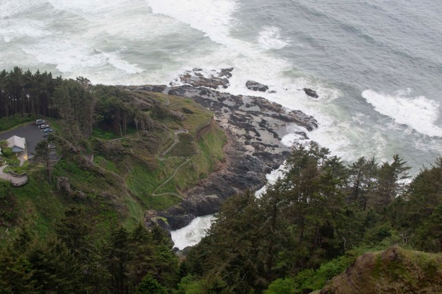 Then, 700 feet above Devils Churn and the road to the “Best View on the Oregon Coast”!! This is the highest point accessible by car on the Oregon Coast and provides views of 75 miles of coastline and 20 miles out to sea – on a clear day (sadly – this was not a clear day as there was a lot of fog;-( ). Still – some stunning views –