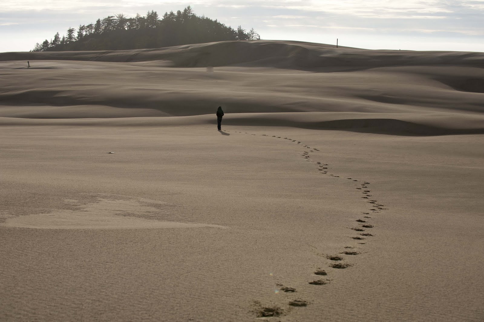 These dunes provide miles and miles of opportunities for recreation including off-road vehicle use, hiking, photography and camping – to name only a few. We felt it necessary to take full advantage while in the area. First a hike to ‘get our feet wet’. So – a walk out the small path to the rear of our RV park, which had “dune access”. Silly me – I thought up and over the (approximate) 100 foot dune and we would be at the ocean!*#$ When we hit the top of the dune the expanse of sand before me took my breath away!! REALLY. And, as we walked a short distance and looked from whence we came – one had NO idea which direction might be the way home?!?!? So – lots of footprints – like dropping breadcrumbs. Maybe a sand angel or two. And the beginning of a sunset. AND, by the way, the ocean was no where in sight. Turns out, it is about a mile and a half away.