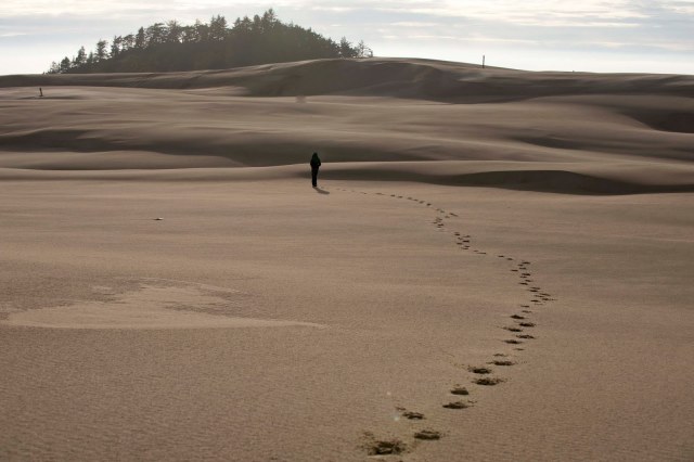 But – back to the dunes and their history lesson. It has taken about 55 million years for these Oregon Dunes to develop, starting with the building of the Coast and Cascade Mountain Ranges (via lava from the earth’s core). Then glaciers, wind and rainfall began to grind these peaks down to tiny grains of rock and carry them to the ocean. There currents push the sands back onshore, where winds sculpt them into dunes.