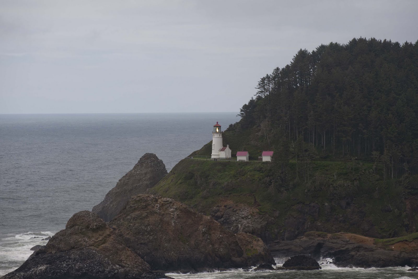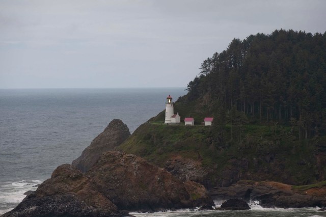 The old Heceta Lighthouse also beckoned (or maybe beaconed?!?!). Purported to be the most photographed beacon in the US, this lighthouse was built in 1893 and named for the Spanish mariner who is credited with being the first European to set foot in the region. Originally, this lighthouse was manned by three ‘keepers’ who rotated their watches. In 1893 this was a VERY isolated spot – so, the houses for the three were part of the facility as was a school for their children. All supplies and materials to build all the structures were brought to Heceta Head via the ocean and carted up the hill to the building sites. A distance view can be captured from the Sea Lion Cave – or an up close and personal from a tour at the lighthouse.