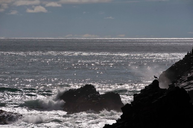| The bird atop this rock seemed to enjoy the spray….. for over a half hour. |