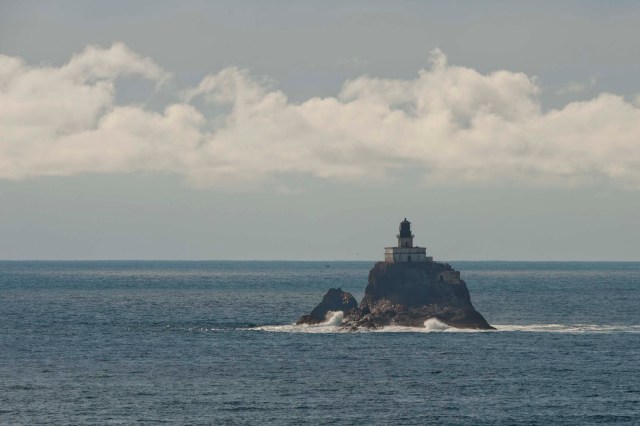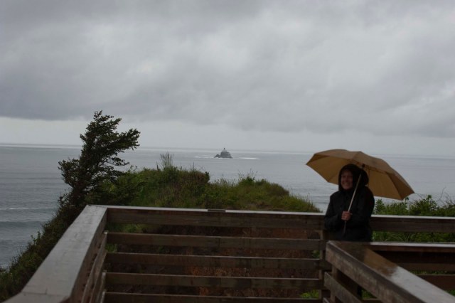 Ecola State Park and Cannon Beach, on the other hand, are delights! We braved the mist and rain to walk to the viewpoints in Ecola State Park to get what we could in the way of pictures of Cannon Beach, Haystack Rock and the Tillamook Rock Lighthouse. (Ecola is the Chinook Indian word for whale and was affixed to this region by the Lewis and Clark expedition, as they found a whale washed up on a beach here.)