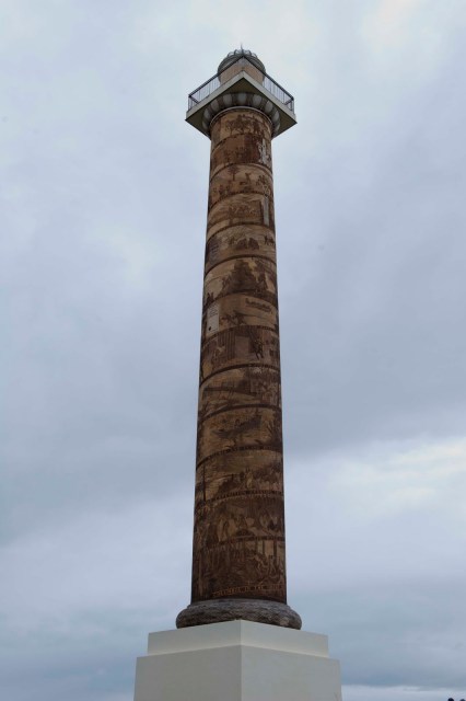Heading up Coxcomb Hill, one finds the 125-foot Astoria Column sitting atop the Hill. The Column was built in 1925 to commemorate the westward sweep of discovery and migration. This unique structure has 14 murals made in Italian sgraffito technique (etched concrete). You can see these murals in this fantastic photo taken by my personal photographer traveling with me –