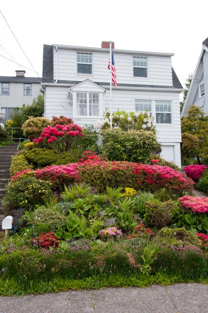 It sits on park-like grounds covering an entire city block. The flowering Rhododendron (remember our Rhody Day Celebration in Florence??) are just beautiful up here! And, they are everywhere in the wonderful shades of pink and lavender. Couldn’t resist this picture of Gary’s handsome face enhanced by all these Rhodies!!