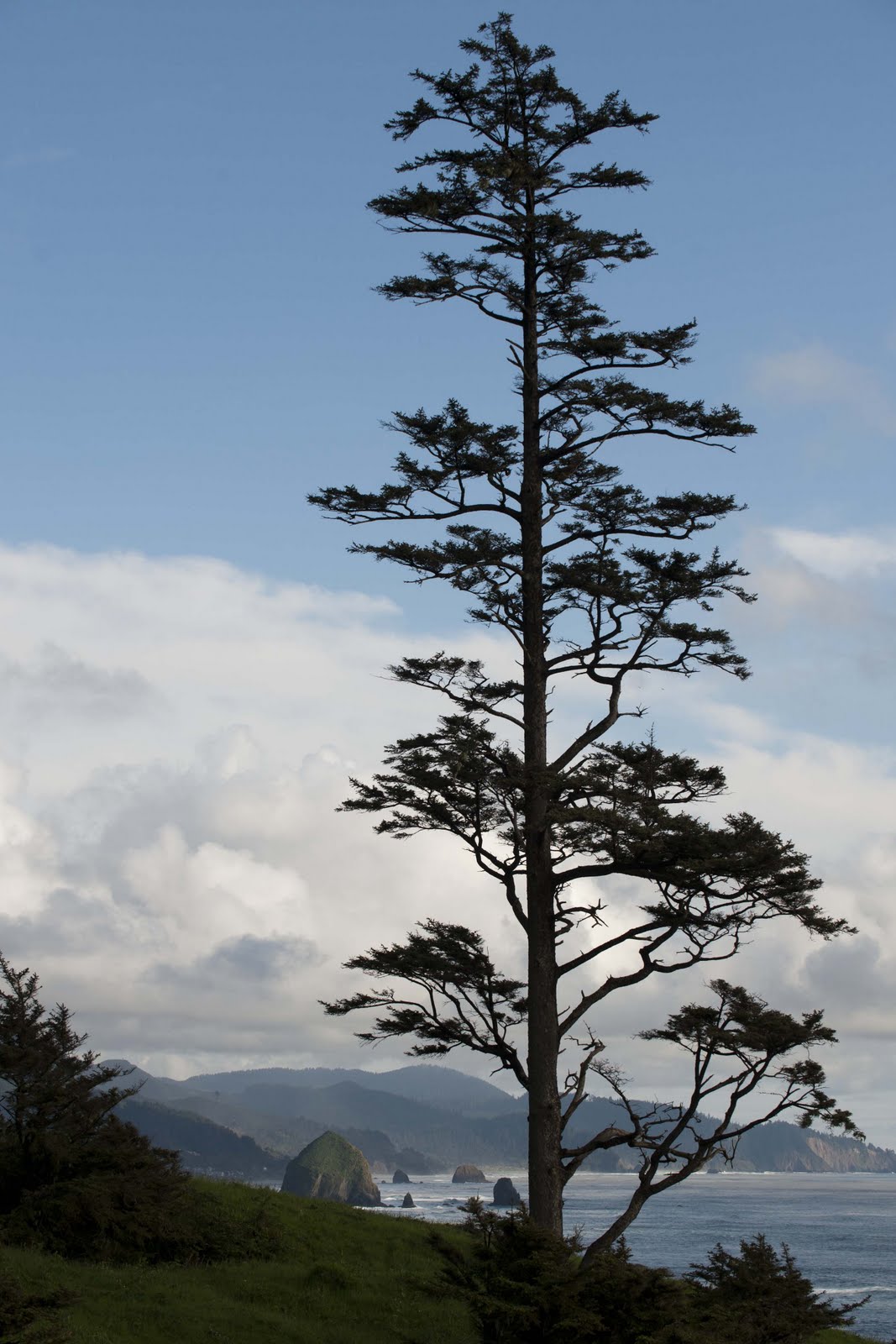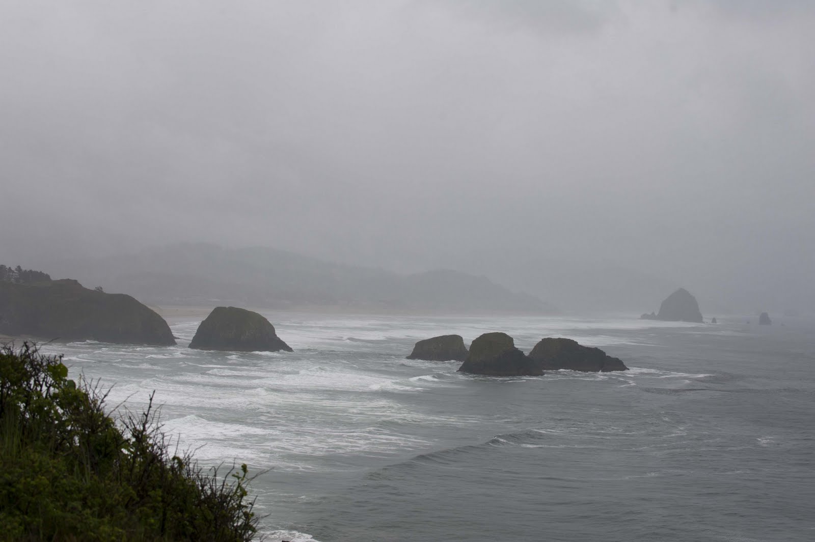 Ecola State Park and Cannon Beach, on the other hand, are delights! We braved the mist and rain to walk to the viewpoints in Ecola State Park to get what we could in the way of pictures of Cannon Beach, Haystack Rock and the Tillamook Rock Lighthouse. (Ecola is the Chinook Indian word for whale and was affixed to this region by the Lewis and Clark expedition, as they found a whale washed up on a beach here.)