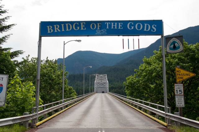 There is a VERY long Indian legend about how the Indians prayed for a way to cross the mighty Columbia River and a landslide occurred creating a stone dam/bridge across the river. Today, there is just the Bridge of the Gods. Which we, of course, had to take –