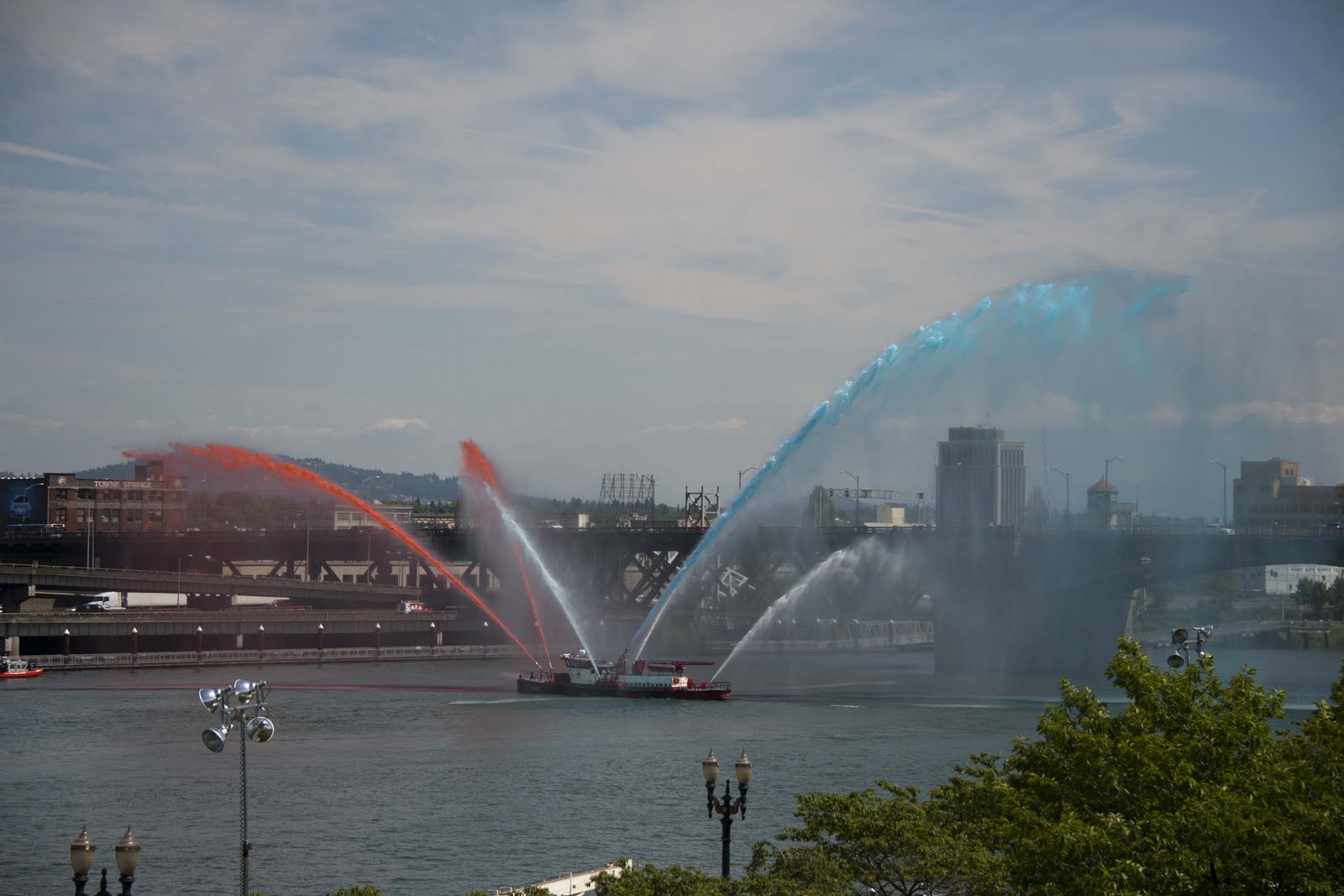 About 3PM, the bridges all started to go up – and there were the Navy ships in all their wonder along with the ‘fire boat brigade’! What a site to see and how much fun –