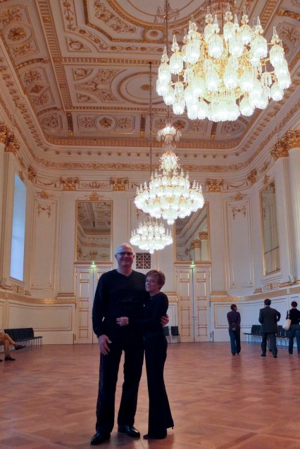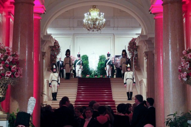 When we arrived, we were admitted to the Foyer of the Palace to await our admission to the Festsaal. A string quartet and a glass of champagne entertained –