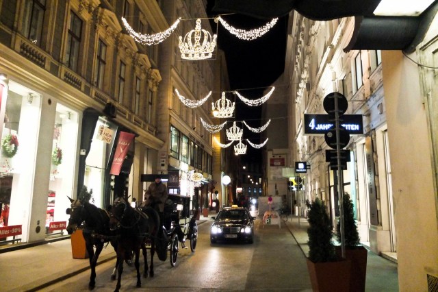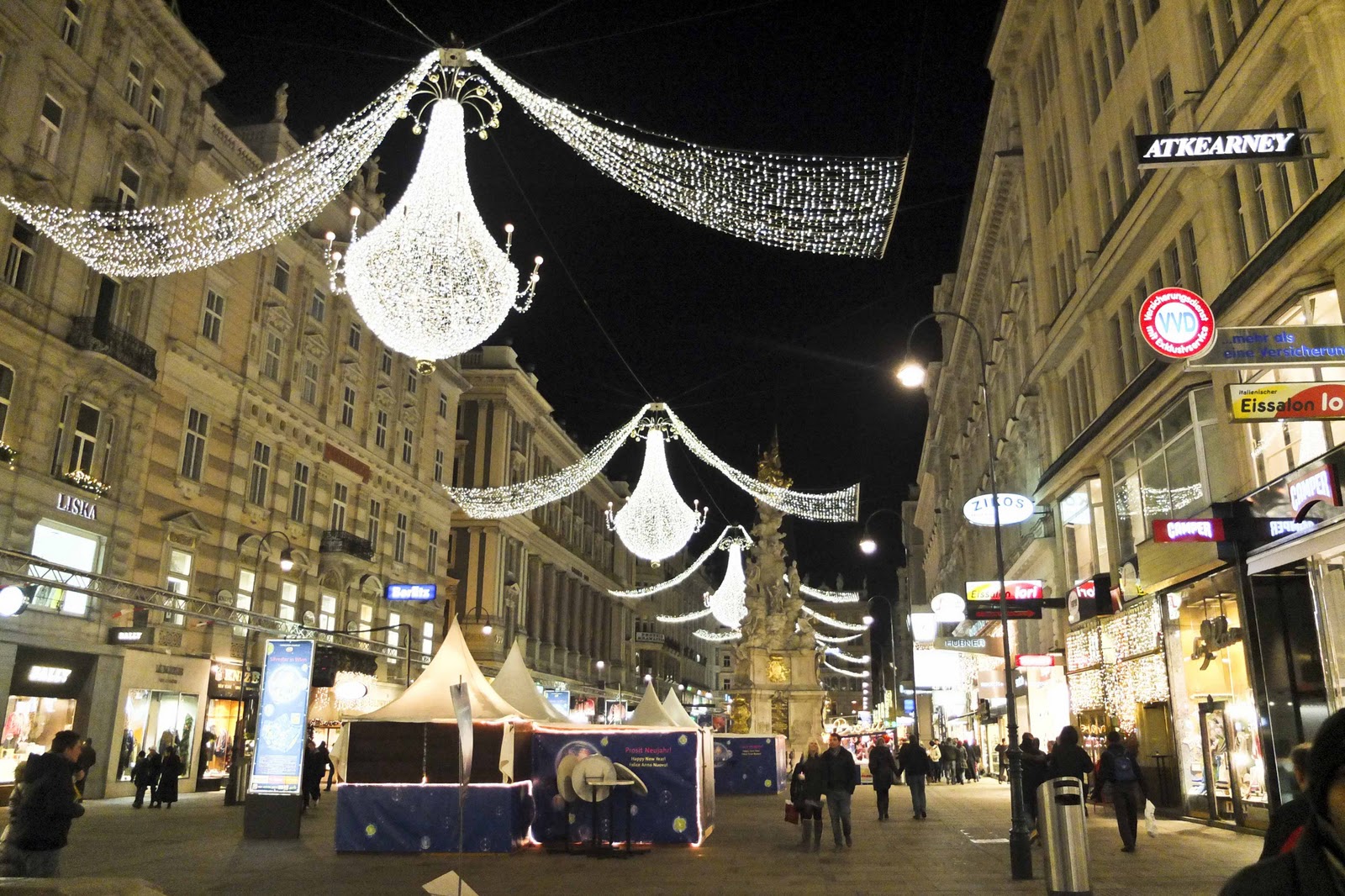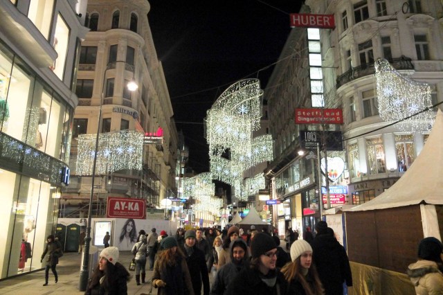 All that VERY rich gorgonzola sauce needed to be walked off – so we checked out the happening areas of Wien. The decorations were wonderful and preparations for New Year’s Eve were everywhere –