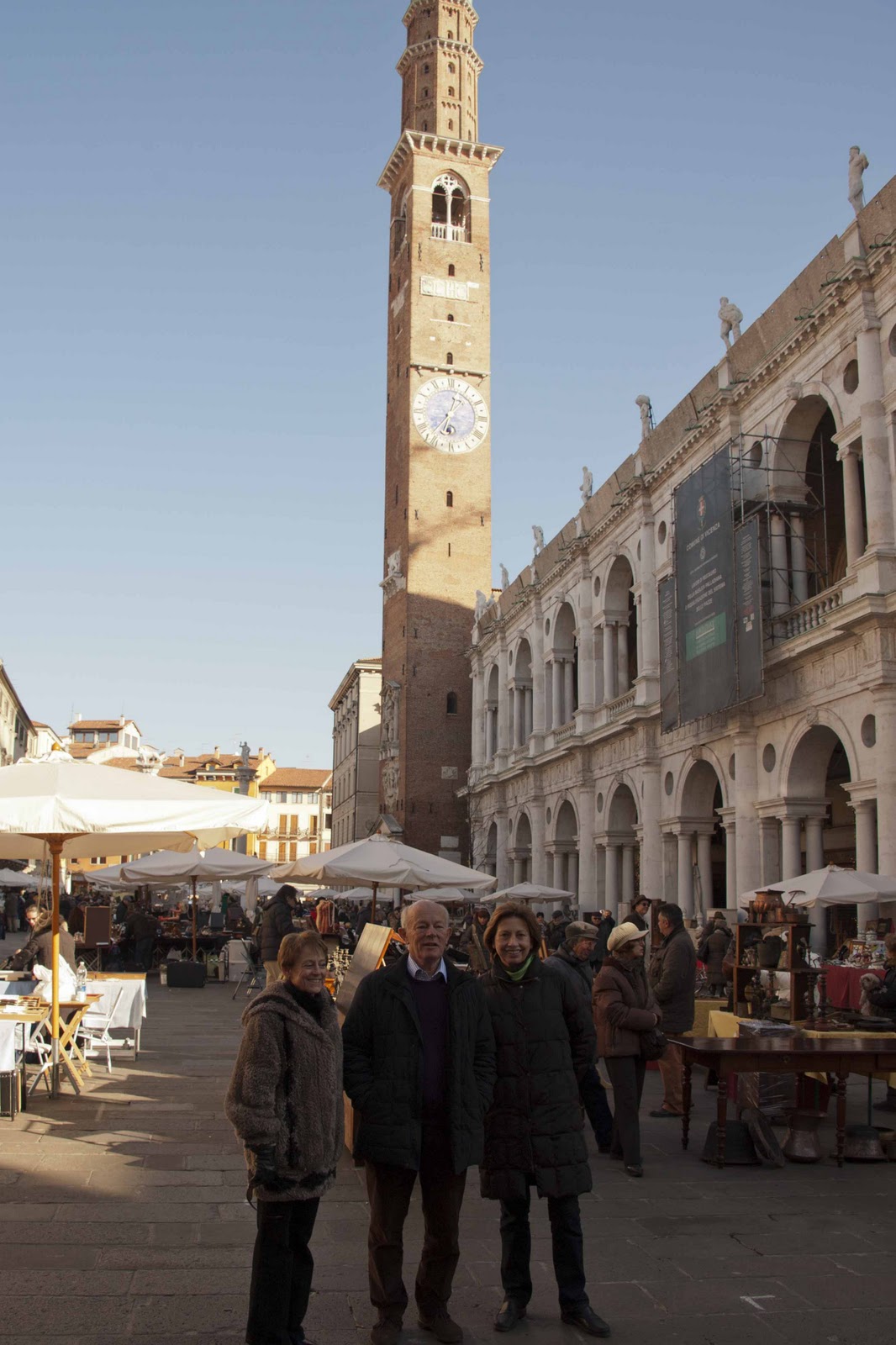| Market day outside the Palladian structure in the main piazza. |