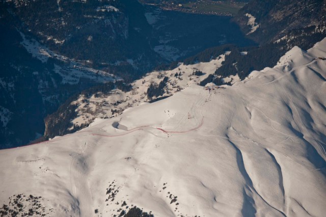 | The red fencing is the Top of the Lauberhorn downhill race run. |