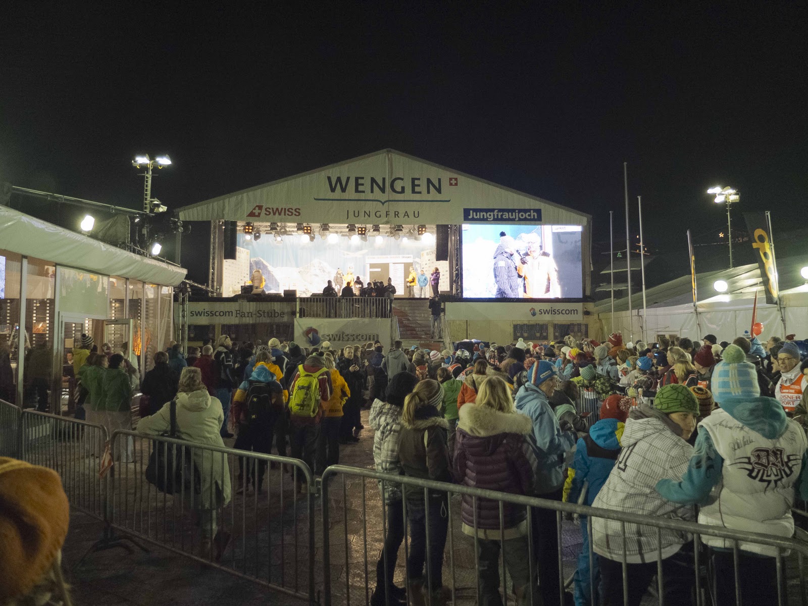 One must pay attention to the train schedule as timing is everything. Opening ‘ceremonies’ (not exactly what was expected!) were at 5:15 back in Wengen and we had two trains to catch to get there. So, it was time to retrace our steps. As mentioned, we could have missed the evening events – especially as Ted did not make the bib draw – but a close up of Axel made the evening better;-)