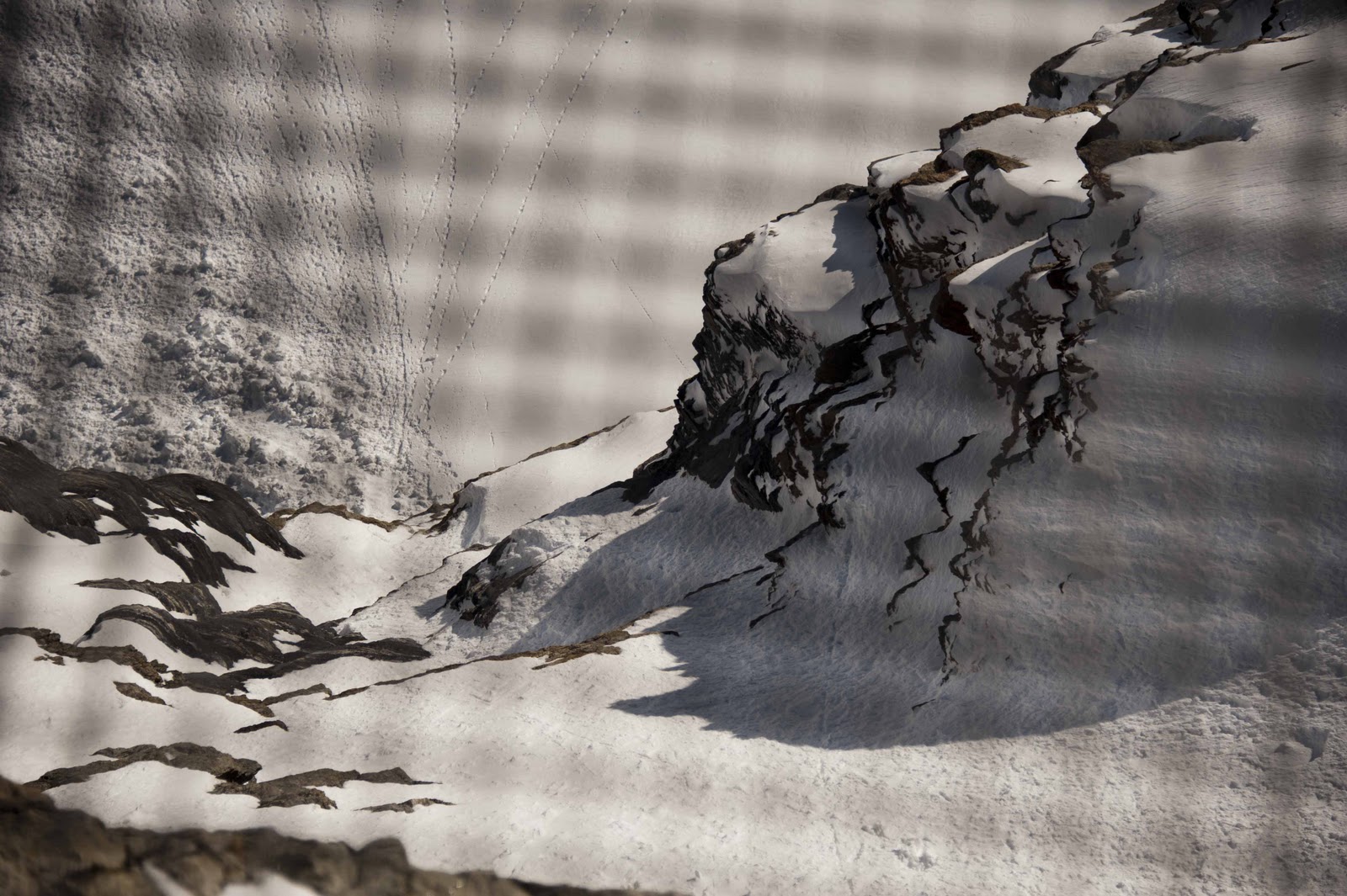 Fortunately, we did not have to scale the Wall – but, were delivered safely by the Jungfraubahn. Our first stop was the Glacier Plateau. While the sky was beautifully clear, without a cloud in sight, the wind was blowing at a steady 20 miles/hour with greater gusts and the temperature (without wind relativity) was about 20 degrees. COLD!!!