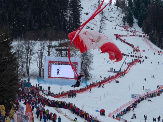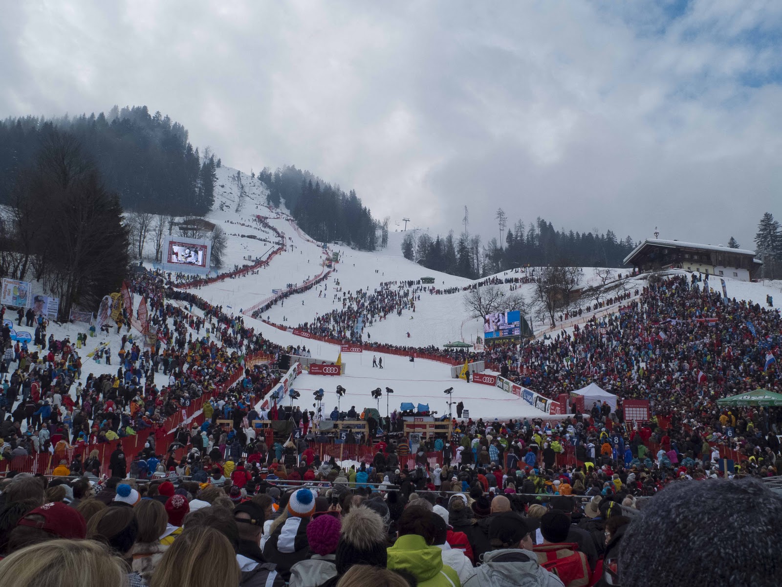 Kitzbuehel and the races – the weather finally improved enough to run the famous Hahnenkamm (albeit, a shortened start gate). The ‘fly over’ here was quite different from the one in Wengen by the Swiss Air Force!!