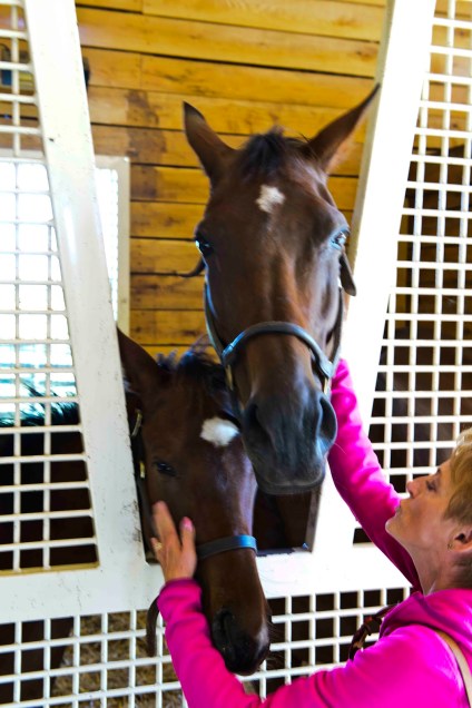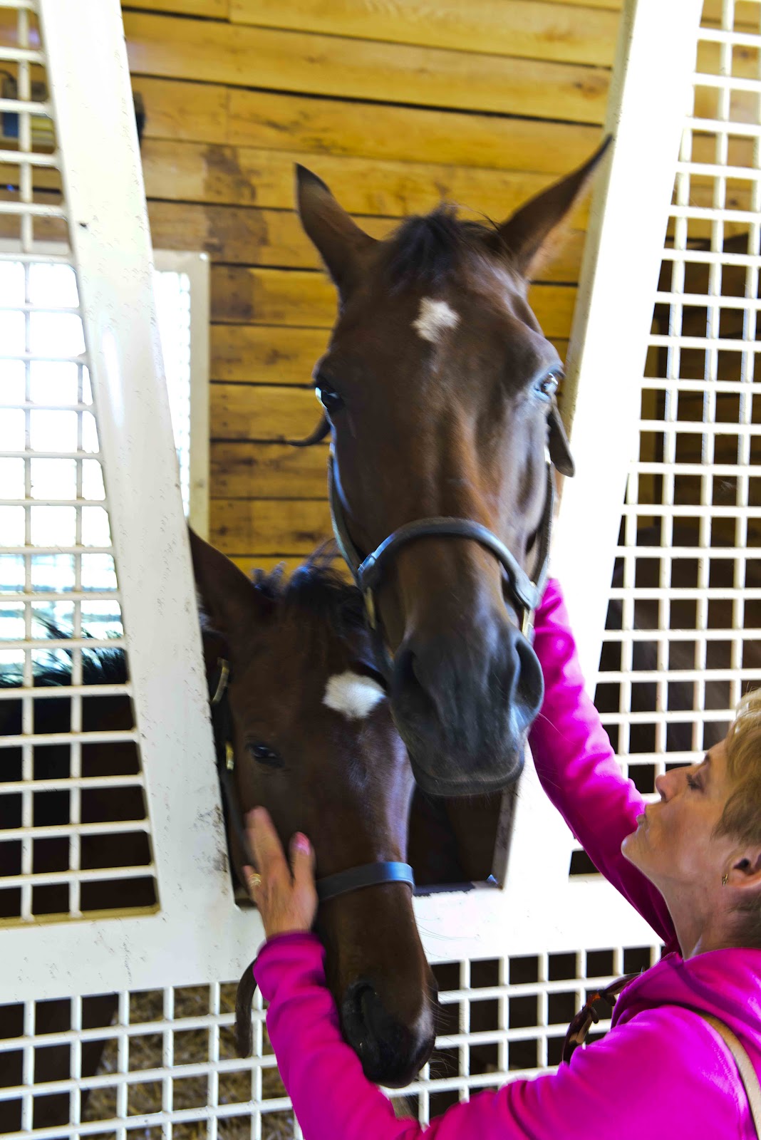 BUT – we wanted to see these up and coming ‘stars’ up close and personal in their plush surroundings. So, we were off on the ‘Unique Farm Tour’. The first stop was the Katierich Farm where the ‘stars’ were truly the horses – the mares and their current colts. These were not just your run of the mill colts – we saw one of the many grandcolts of Seattle Slew, value $2 million – among others. And these poor things had to make due with a meager stable costing about $2.6!!